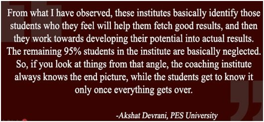 3. Those who are confused about the choices they want to make in the future are affected more by this inveigling. Those who end up joining these institutes are continually made to believe that not bagging a seat in a good college is the worst possible mistake they can commit in their lives.
